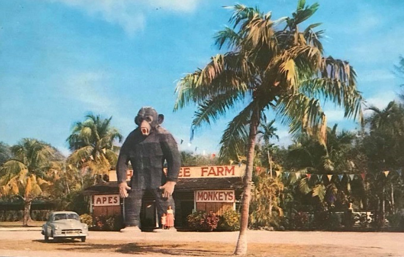 The Dania Beach monkeys escaped from the Dania Chimp Farm in the late 1940’s. The Dania Chimp Farm was originally called the Anthropoid Ape Research Foundation (ARFF). ARFF was opened in the early 1940’s by Leila Roosevelt and Armand Dennis in Dania Beach, Florida. ARFF was both a research facility and zoo. Primates were imported from Africa for biomedical and entertainment purposes. The Ash family bought the property in 1951 and renamed it the Dania Chimpanzee Farm. The Dania Chimp Farm closed in 1957 when Florida Power and Light bought the land.