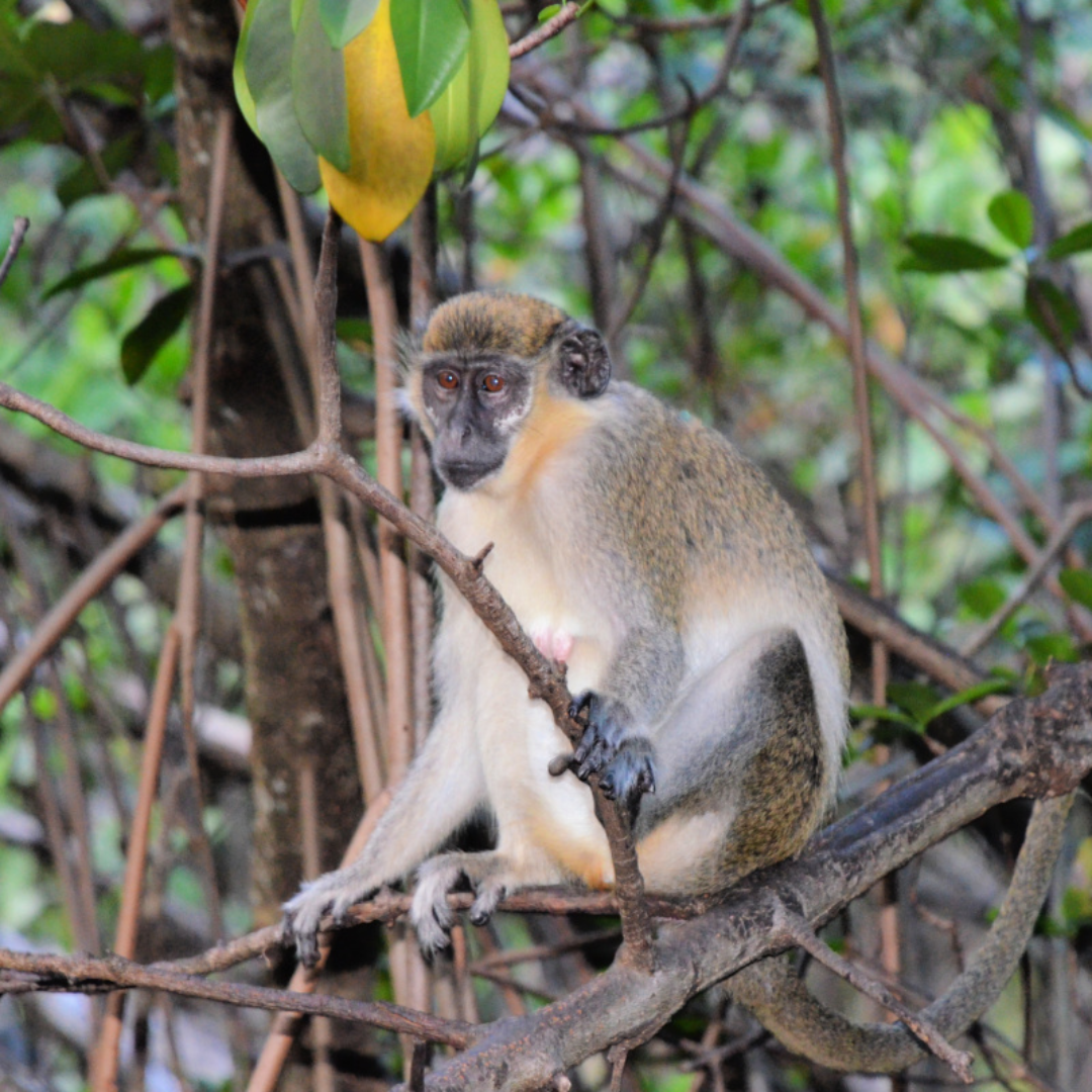 The Dania Beach mangroves are home to a small population of African vervet monkeys, a species that has successfully adapted to life in South Florida for decades. These monkeys live in four social groups, each consisting of adult females, their offspring, and several males.